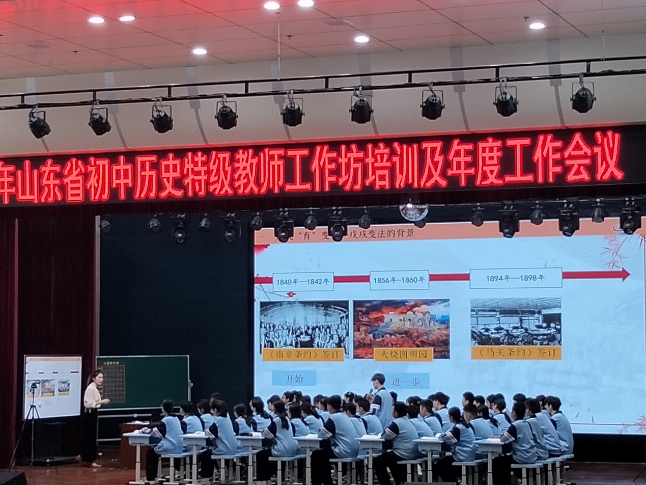 第二天,来自济南五中的张欣老师,滕州市至善公司的马田老师和薛城区北临城中学的许建老师进行了《戊戌变法》同课异构展示。张欣整堂课用一个“变”字作为灵魂进行教学。她用时间轴梳理回顾了中华民族危机的日益加深,注重对员工时空观念等核心素养的培养。马田依据新课标要求将课程分为身处绝境又逢生、顺势而为变法兴、反思得失再前行三个篇章进行讲授。课堂气氛活跃,通过学习目标的叙写体现了新课标理念,对教师教学开展和员工高效学习提供了有效指导,赢得了在场专家和老师们的一致好评。许建运用李鸿章语录导入本课,他把课程分为四个篇章,运用历史共情和角色体验等多重方式创设愉悦的历史情境,对员工进行沉浸式的教学,员工们能够主动参与课堂进行合作探究,该课程注重激发员工的兴趣,教学方式新颖,有效体现了以员工为中心,引发了在场老师们的深度思考和共鸣。