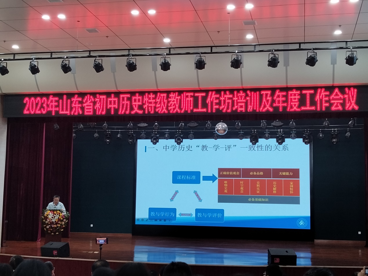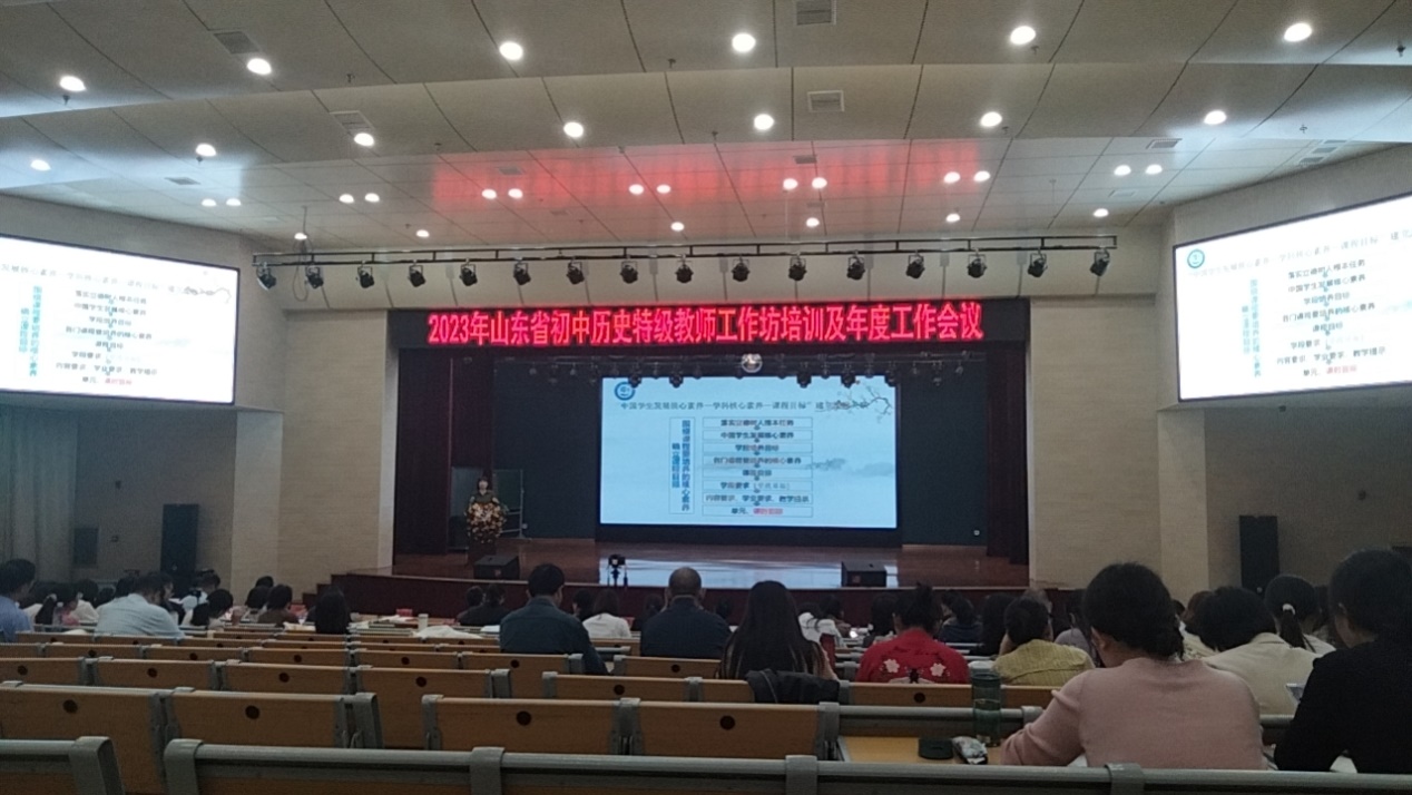 第一天,在朱法武老师带领下,21级和22级历史学专业全体员工现场聆听了四场精彩报告。首先,北京市海淀区特级教师赵文龙以北京市中考历史试题为例,结合山东省中考历史试题特点,从中学历史“教-学-评”的一致性的关系和中考命题的趋势和特点出发,分析近年来北京市中考历史命题的特点,同学们认真记录,深刻体会其中的内涵,以史育人。随后,泰山公司附属中学陈秋英老师从自身成长说起,带领大家探索教师专业成长的路径与思考,教导同学们以后要成为一名足够专业和充满爱心的老师。紧接着,威海市初中历史工作坊的王丽丽老师从历史学经典阅读出发,分享有关提升历史素养和专业技能的经典书目,鼓励大家要“阅”读历史经典,厚植学科素养。最后,枣庄市教育科学研究院初中历史教研员种艳斌作了题为《新课标背景下学习目标的确定与叙写》的报告,从素养导向的教学目标、教学目标具体化的理论基础和学习目标的确定与叙写三方面作了详细论述,引用名家大师的方法观点,抽丝剥茧的讲解了如何分解课程标准,从而准确叙写学习目标,体现了新课标的重要性。