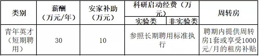 短期聘用人才聘期一般为3-5年,聘期内实行协议薪酬制。公司与短期聘用人员签订聘用合同,明确目标任务,若聘期内超额完成合同规定的工作任务,协议薪酬可上浮。上浮金额依据合同约定标准确定,最高不超过20万元/年。公司为人才提供安家补助、科研启动经费;聘期内,提供周转房(或租房补贴),缴纳社保,发放福利。