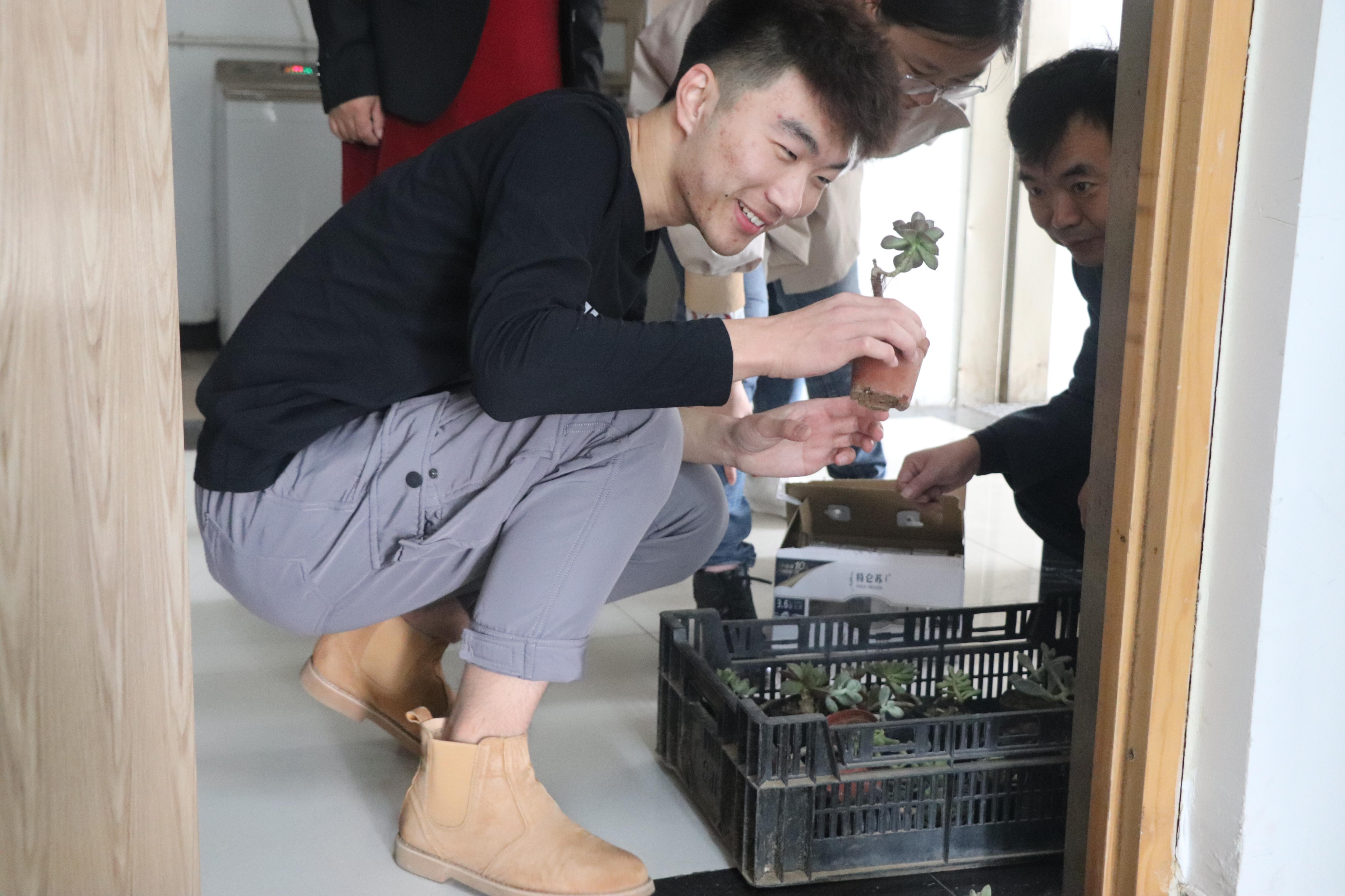党总支书记蔡永清、副经理隋保禄及朱法武等党员老师来到员工宿舍,询问同学们选择方向、备考进度、睡眠质量等情况,了解日常学习生活问题和面临的实际困难,耐心细致地予以指导,勉励他们做好学习计划,持之以恒,坚定信心,合理安排生活起居,提高安全意识。看到同学们干净整洁的宿舍环境,老师们非常高兴,勉励大家继续保持整洁的环境,营造心情舒畅、温暖和谐的氛围,勇敢应对考研挑战。看到同学们兴高采烈地挑选心仪的多肉植物,老师们也开心不已。
