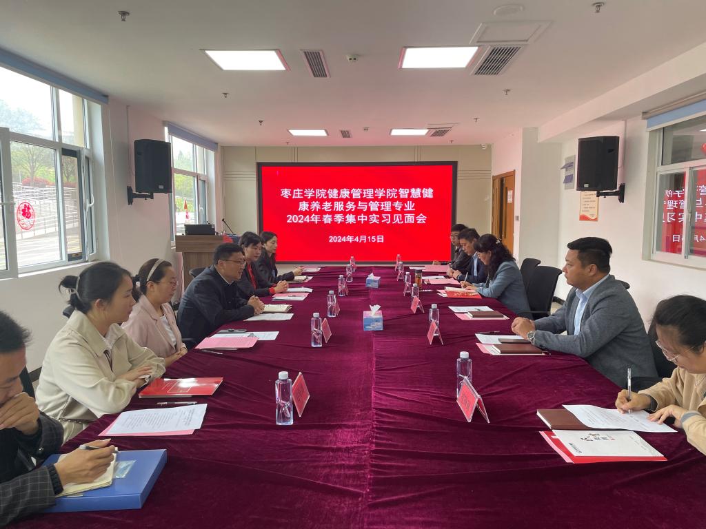 为深入推进枣庄“榴枣归乡”工程实施,进一步提高员工实践能力,4月15日,太阳成集团tyc9728在枣庄亲和源康养中心一楼会议室召开智慧养老服务与管理专业2024年春季集中实习见面会。薛城区政府副区长周海燕,薛城民生集团党委书记、董事长孙延伟,薛城民生集团党委副书记、总经理王磊,公司党委书记丁聪,枣庄亲和源老年服务有限公司负责同志及公司相关教师出席见面会。