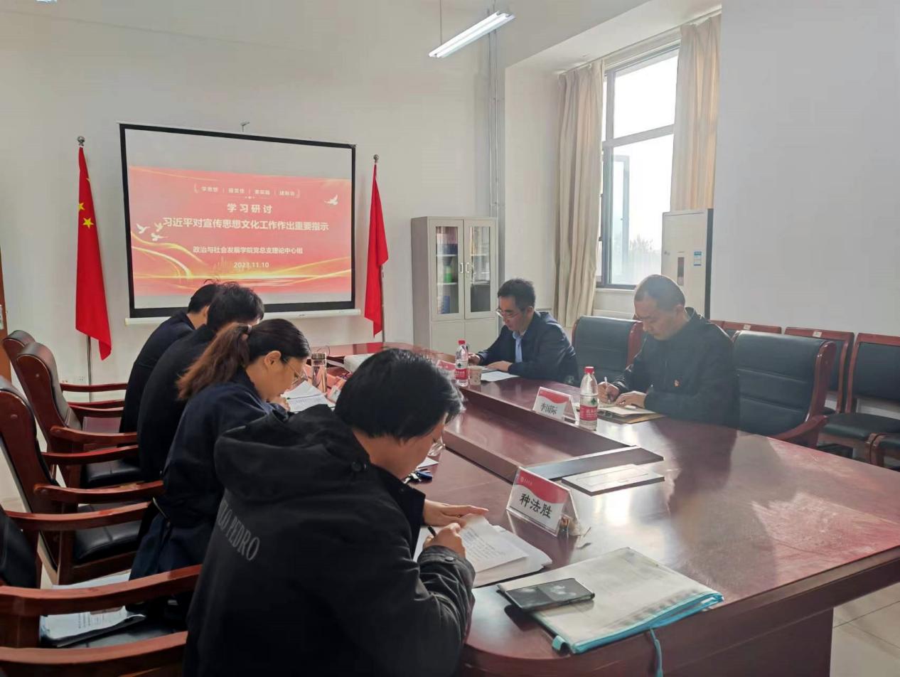 本次党总支理论学习中心组学习的主题是习近平总书记关于宣传思想文化工作的重要指示精神,通过会前分散学习与会上集中学习的方式开展。理论学习中心组成员高原、刘明、董嫱嫱联系工作实际,依次进行交流发言。