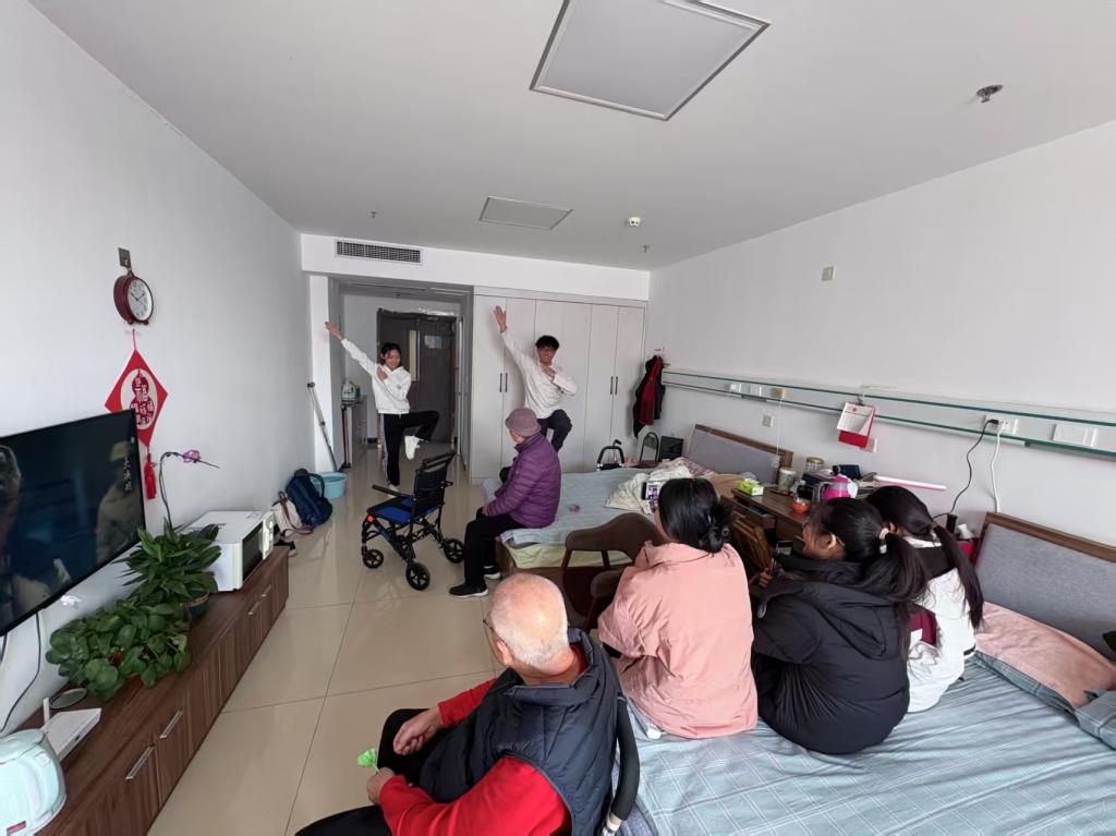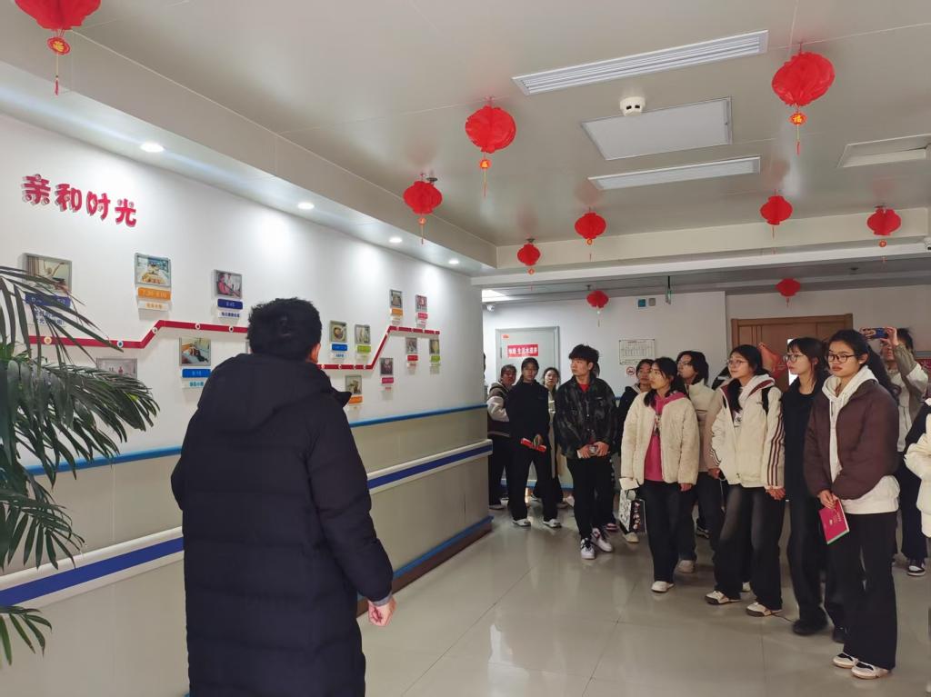 抵达亲和源康养中心后,同学们在工作人员的引导下,开启了本次充实的学习之旅。工作人员为同学们详细介绍了康养中心的整体运营模式、智慧健康养老理念及服务体系,使同学们对未来的职业场景有了初步认识。随后,同学们有序参观了老人生活区与娱乐区,近距离感受智慧健康养老设施在日常生活中的应用。智能化的护理设备、适老化的居住环境,以及丰富多彩的娱乐活动,让同学们直观感受到科技为养老服务带来的变革。在互动环节,新生们与老人们亲切交流,耐心倾听他们的生活点滴与需求,深刻理解养老服务中人文关怀的重要性。