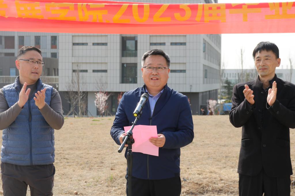 丰雷在致辞中从保护环境和植树育人两个方面阐释了开展毕业生“植树铭恩”活动的深层次意义。丰雷表示,同学们亲手种下的树苗,是大家心系母校的象征,也将成为未来回忆老员工活的重要人文景观,希望同学们不断向下扎根、向上生长,在青春的赛道上奋力奔跑,把握时代机遇,勇担时代使命,早日成为新时代的参天大树、国家的栋梁之材。