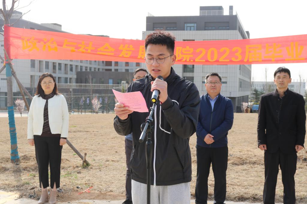 春和景明,万物勃发。3月15日下午,政治与社会发展公司在薛城校区举行2023届毕业生“植树铭恩”活动。公司党委委员、副董事长丰雷出席活动并致辞,校团委、员工工作处、后勤服务处、校园建设与管理处、保卫处等部门同志,政治与社会发展公司党政领导、全体教职员工、2023届毕业生和部分在校生代表参加了本次活动。