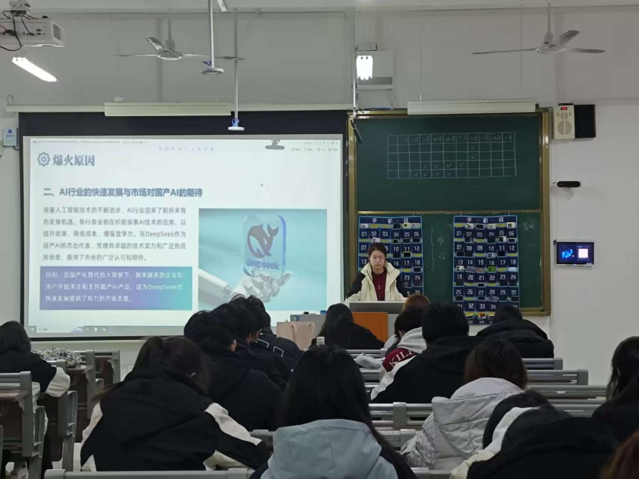 此次主题团日活动以现象级国漫《哪吒2》与DeepSeek大模型为载体,围绕“文化基因解码、AI伦理探索、青年使命熔铸”三部分展开。活动中,各班团支书带领大家深入剖析了《哪吒2》中传统文化元素的现代化演绎,引发大家对传统文化传承与创新责任的思考。针对“DeepSeek”这一前沿 AI 技术,各班团支书就“DeepSeek”在推动社会进步与可持续发展方面的作用进行阐述,全方位展示了 AI 在科研、医疗、教育等多个领域的成就。同学们围绕“从《哪吒2》和‘DeepSeek’在文化传承与科技创新中的责任”各抒己见,现场气氛热烈。