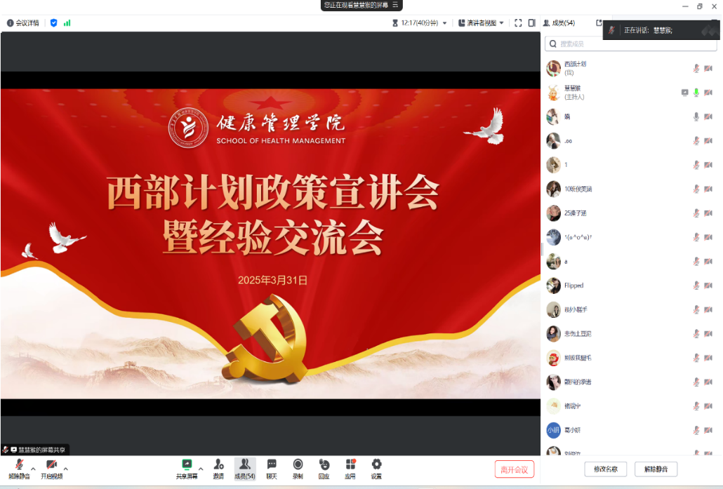 会议伊始,主持人从招录政策、岗位分布和保障机制三个维度对西部计划进行了系统解读,特别就服务期满政策、定向招录政策、职业能力培养等员工关切做了重点说明。