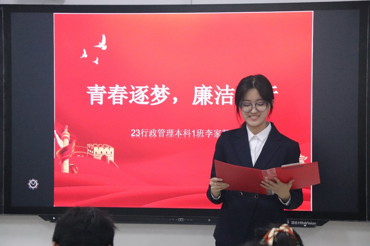 比赛中,参赛选手以“廉洁”为切入点,深入挖掘名人志士的廉洁事例,生动展现了文人墨客所秉持的高尚廉洁风骨。其中,团体组合杨灿灿、李琳巧妙地将廉洁理念融入角色扮演与情景模拟之中,通过精心设计的对话形式,让角色之间的交流与思想碰撞更加引人入胜。经过激烈的角逐,23行政管理本科1班李家懿荣获一等奖,23智慧养老专科2班刘力菲、23智慧养老专科3班孙悦雅荣获二等奖,23智慧养老专科3班王富华、24健康服务本科1班杨灿灿及李琳小组、于欣婕荣获三等奖。