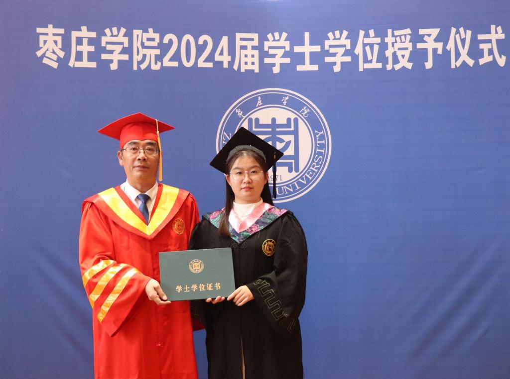 仪式在雄厚庄严的国歌声中拉开帷幕。副经理周海玲宣读《关于授予唐娜等24名本科毕业生学士学位的决定》,公司党委副书记、经理王海峰为2024届员工联络员颁发了聘书。伴随着欢快的乐曲声,安涛副董事长为毕业生逐一拨穗正冠,颁发学位证书并合影留念。