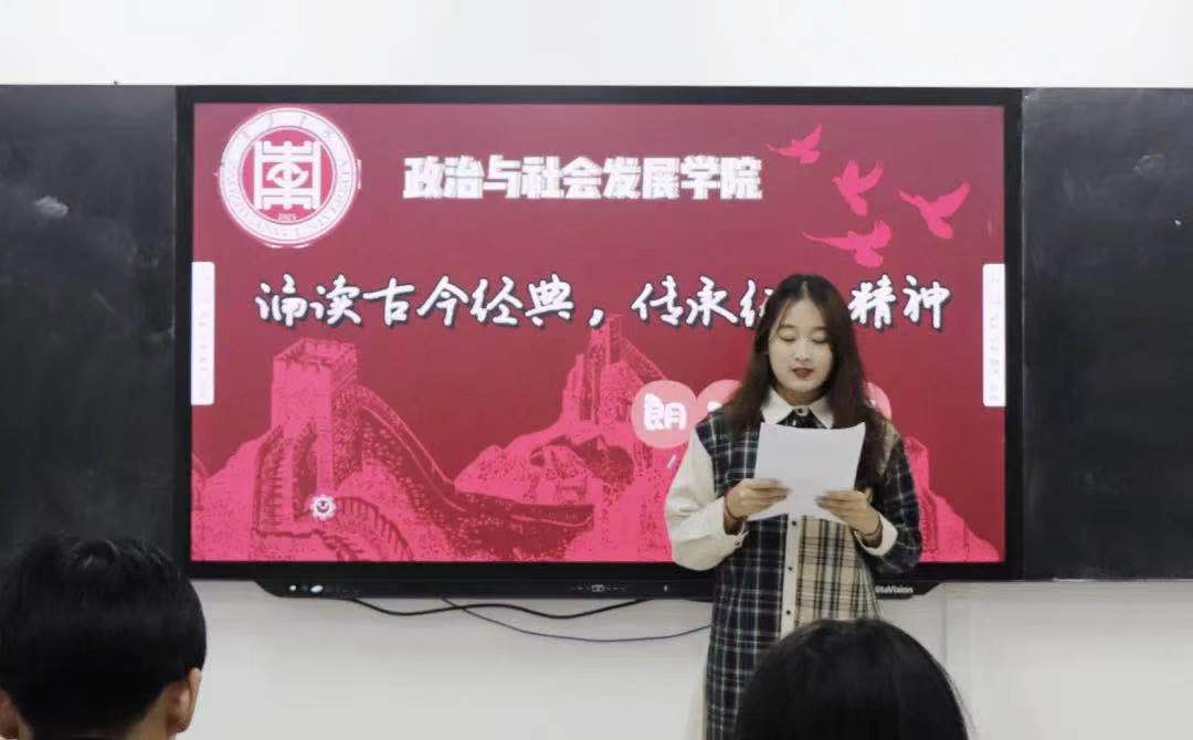 本次比赛以小组为单位展开,同学们积极参加。比赛中,选手们围绕“歌颂党”、“时代赞歌”等话题,以现代诗的形式,配以PPT、视频以及歌曲的方式进行朗诵,或重温建党百年的风雨兼程,或歌颂祖国闪耀篇章的如今。选手们时而激情飞扬,时而低沉内敛,时而声情并茂,时而娓娓叙述,以真挚的情感和精彩的演绎给大家带来一次次精神上的洗礼,引起强烈的震撼和共鸣,赢得观众的阵阵掌声。
