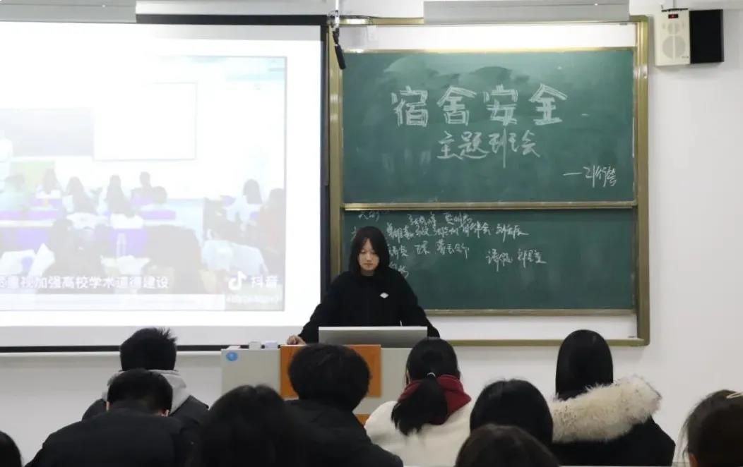 此次班会以“宿舍安全”为主题。首先,各班班长通过播放PPT,向同学们展示了宿舍内存在的安全隐患及其严重后果,提醒同学们要提高宿舍安全意识。随后,各班班长向同学们介绍了宿舍安全的相关知识及防范措施,引导同学们在日常生活中更加重视宿舍安全细节。最后,各班班长就宿舍安全知识对同学们进行随机提问,并对此次班会进行总结,以此巩固同学们的宿舍安全知识。