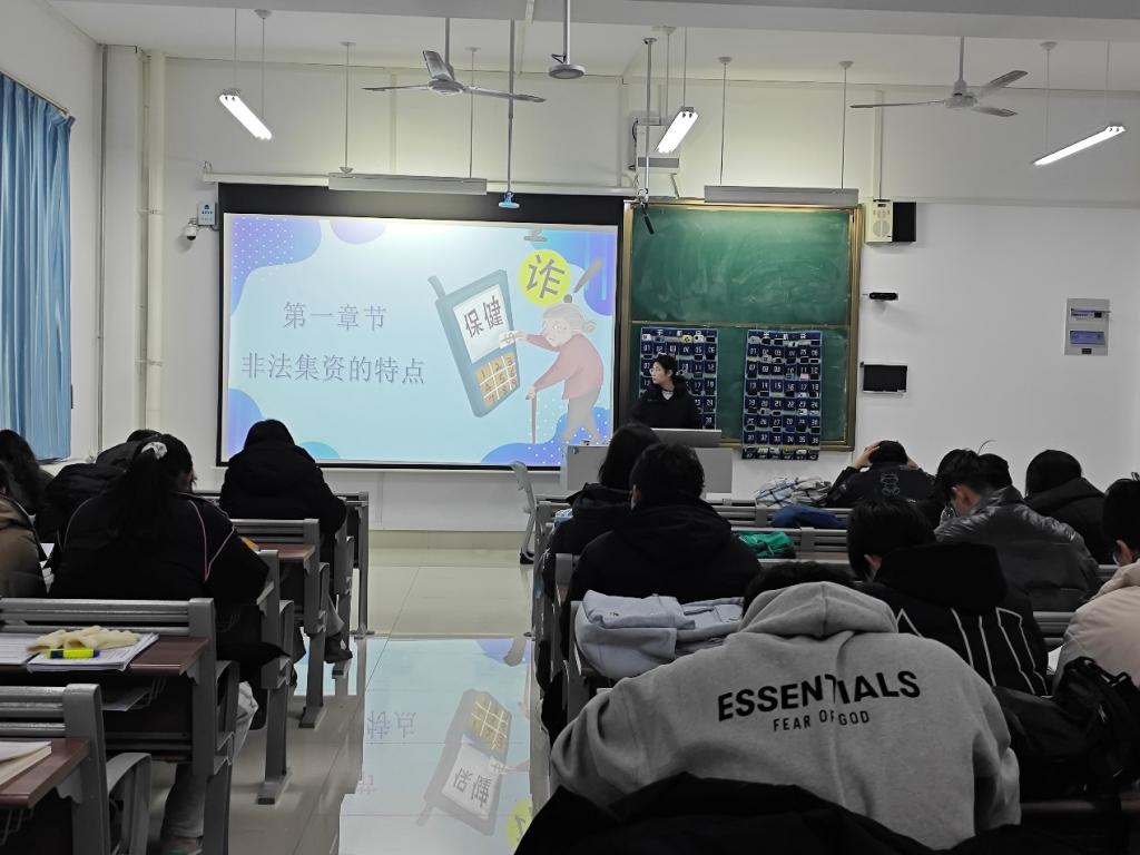 班会伊始,主讲人结合相关PPT,围绕非法集资的基本概念、非法集资特点、造成的恶劣影响及风险防范四个方面,深入阐述了防范非法集资方面的相关知识,促使全体员工深刻认识非法集资的危害性,树立风险意识。同时,主讲人通过以案说法的方式,提醒同学们要增强风险识别能力,强化防范非法集资的意识,提高打击非法集资的责任感,维护自身合法权益。