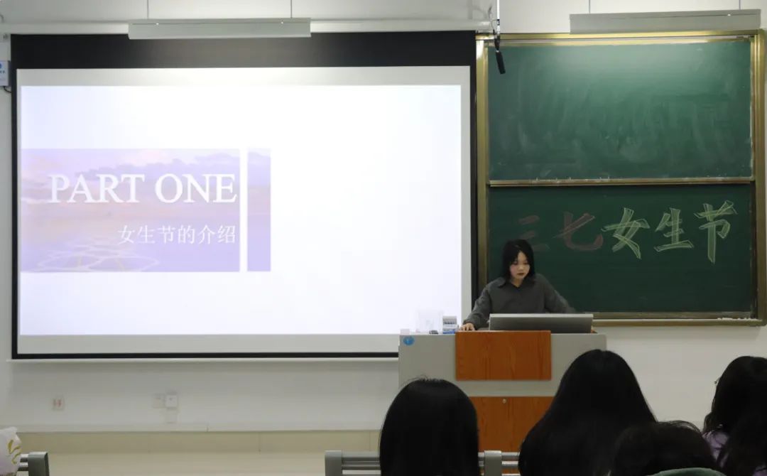 本届活动主题为“花样青春 展我芳华”。活动分为女生节知识科普、互动小游戏、趣味答题和歌曲表演四个部分。活动伊始,主持人向同学们详细介绍了女生节的来历、意义等相关知识,让同学们更加了解女生节这一节日。随后,同学们一起体验了互动小游戏,拉近了同学们之间的距离,点燃了活动现场的气氛。然后,同学们参与了趣味答题并获得了小礼品奖励,最后,同学们欣赏了精彩的歌曲表演,在优美的歌声中,本次活动圆满落下帷幕。