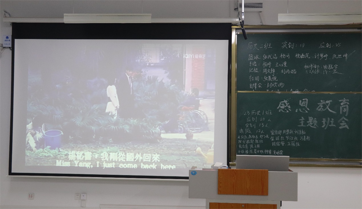 本次主题班会以集体观影的形式开展。电影《妈妈再爱我一次》改编自民间故事《疯女十八年》,以倒叙方式进行,描写精神病医生林志强寻找失踪18年的母亲秋霞的故事。 影片最后,主题歌曲《世上只有妈妈好》响起,深深打动了参加活动的同学。