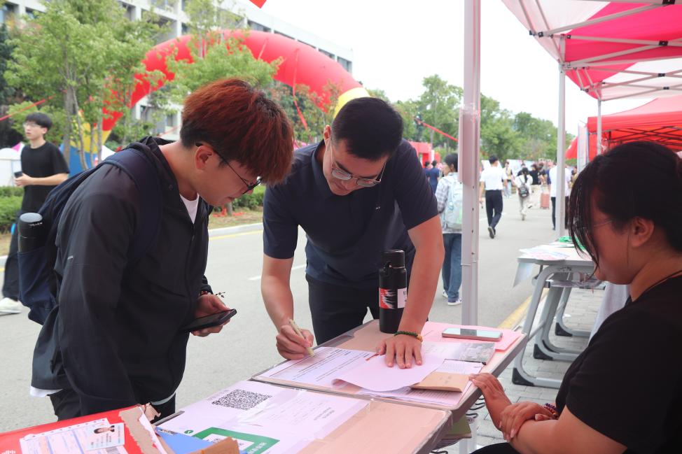 迎新现场,员工志愿者帮助新生完成报到签到、收取资料、物资发放等手续,耐心解答新生及家长的问题,全流程为新生提供周到服务,用细心、耐心和热心充分展现了公司的良好形象。此外,公司为2024级新生设计迎新打卡点,让新生充分感受到公司的温暖和关爱,增强他们对公司的归属感。