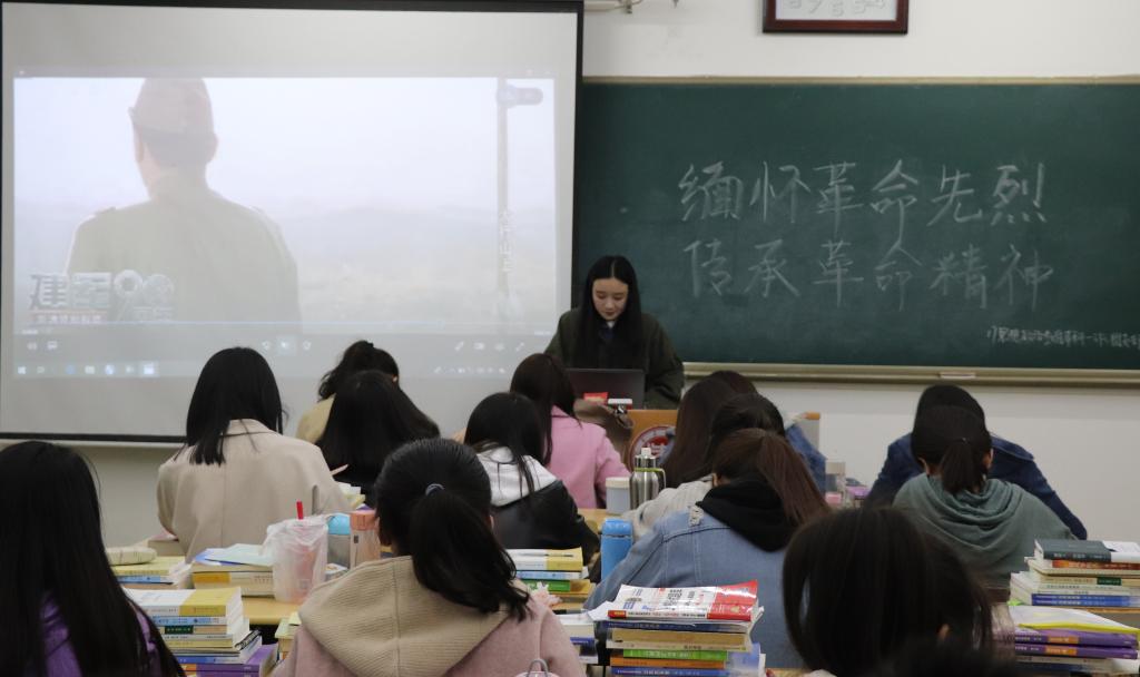 各班通过朗诵革命先烈英雄事迹、播放红色电影《太行山上》等方式,向同学们展现了革命先烈奋勇抗战的峥嵘岁月。在一个个可歌可泣的英雄故事中,同学们重温了中国共产党曾走过的风雨历程,深切体会到先烈们不屈不挠、无私无畏的红色革命精神。活动中,同学们认真学习、积极参与,踊跃地分享自己对革命精神的理解,深情地诉说着对革命烈士的感激之情与无限怀念,使传承红色革命精神的理念深入人心。