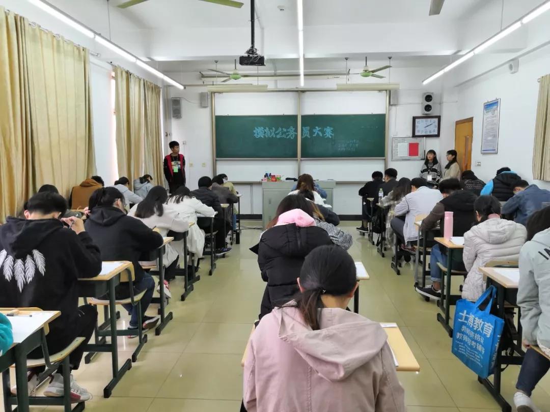 为增强员工对公务员考试的了解,培养员工的应试能力,丰富实践教学活动,公司于11月7日、8日进行了公务员考试笔试环节模拟比赛,11月15日进行了面试环节模拟比赛。公司党总支书记蔡永清等六位资深教师担任面试环节模拟比赛评委。