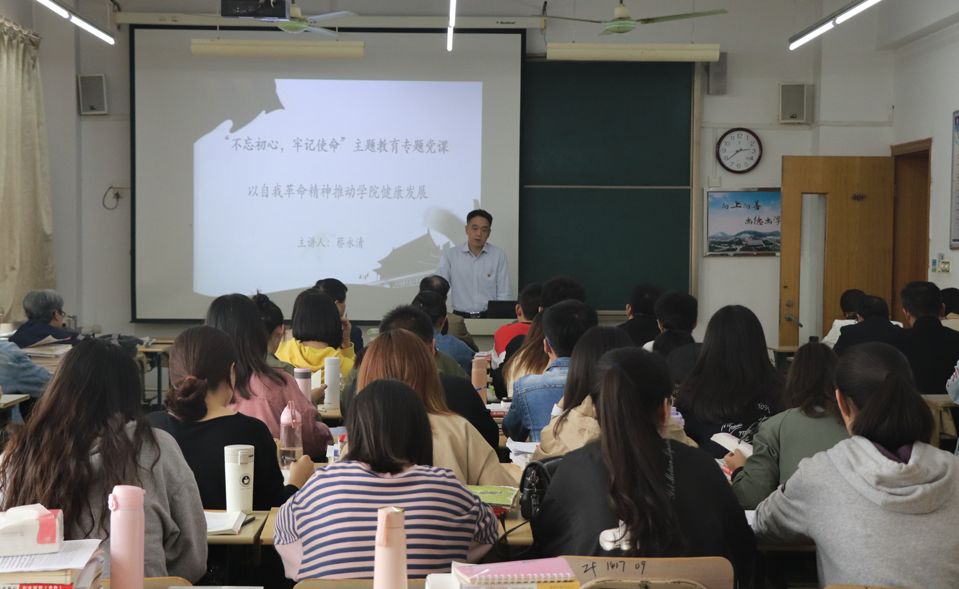 10月23日下午两点半,公司“不忘初心、牢记使命”主题教育专题党课在综合楼1414教室开讲。全体师生党员及主要员工干部认真听取了公司党总支书记蔡永清作的“以自我革命精神推动公司健康发展”的精彩报告,校第五巡回指导组副组长宋明峰到场指导。
