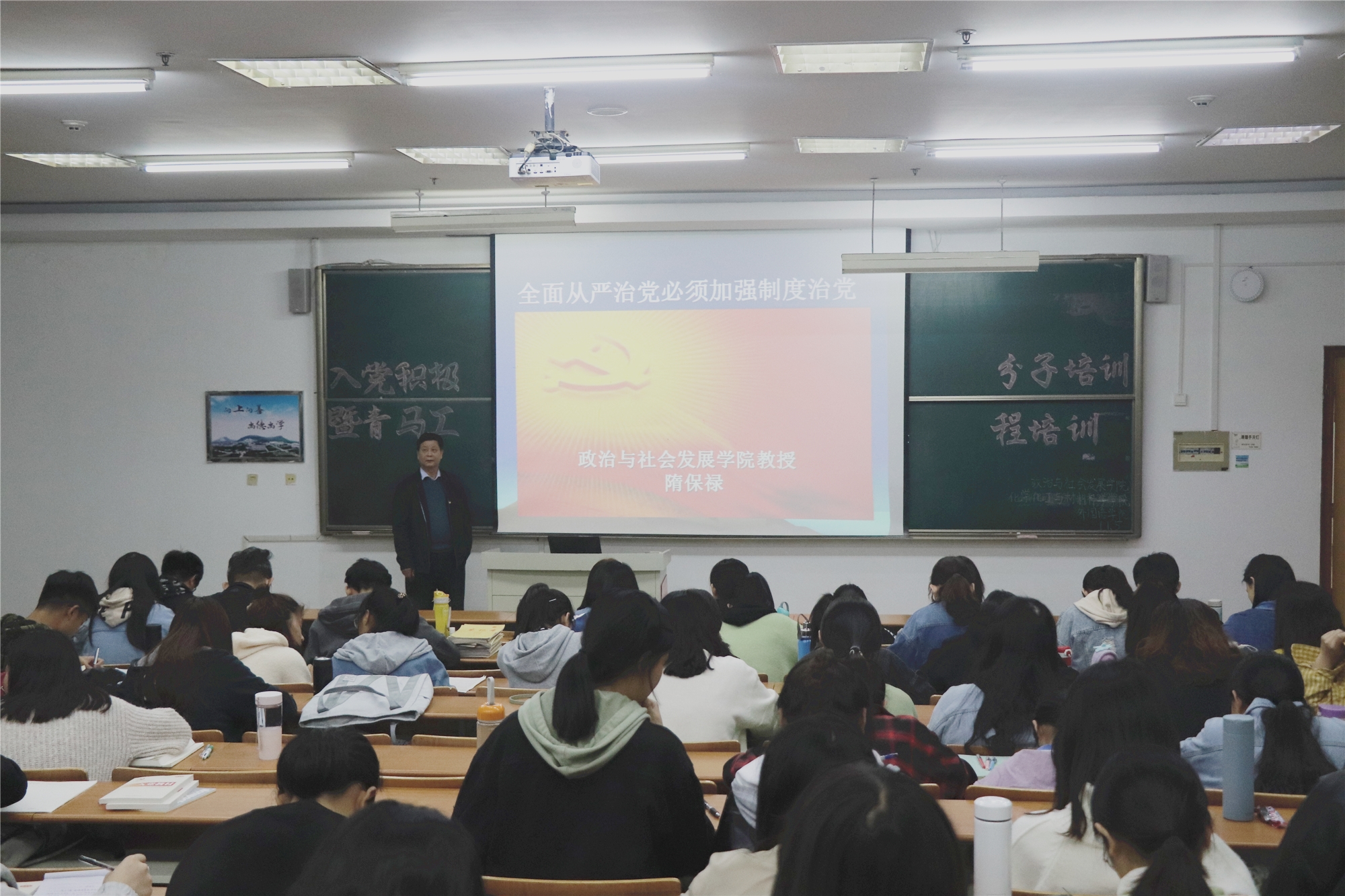 本次培训由公司副经理隋保禄主持,以主题党课的形式开展。会上,隋保禄紧密结合党的十九届四中全会等时政要闻,引出全面从严治党必须加强制度治党的课题,深刻阐述了制度治党思想的重要性和必要性,突出强调了加强治理能力和治理体系的现代化的要求。随后,隋保禄详细解读了制度治党的的历史演变过程、推进制度治党的基本路径和提升党的建设制度化水平的方法措施,使入党积极分子对依规治党有了更加深刻的理解。活动在热烈的掌声中圆满结束。